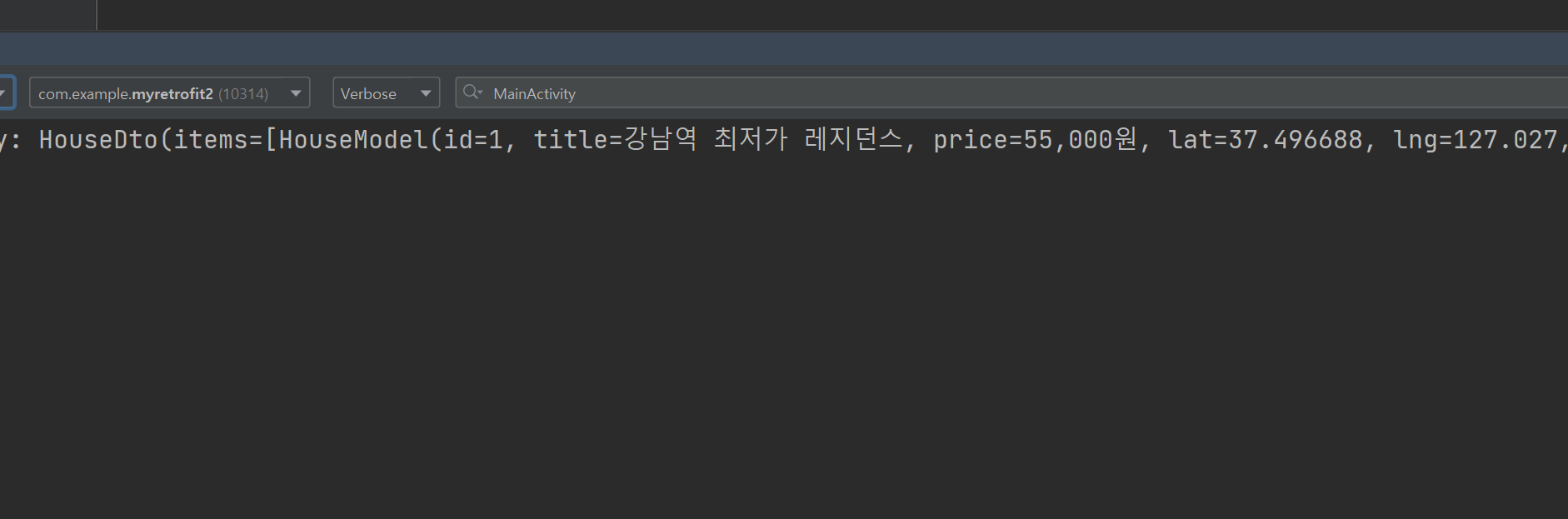 onCreate 안에서 모두 적어주기에는 길어서 함수로 따로 빼놓고 onCreate에서는 houseAPI()만 작성했습니다.