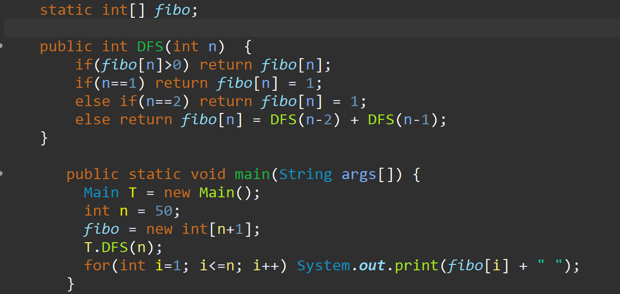 그리고 fibo[n]에 값이 들어가 있다면 0보다 클태니