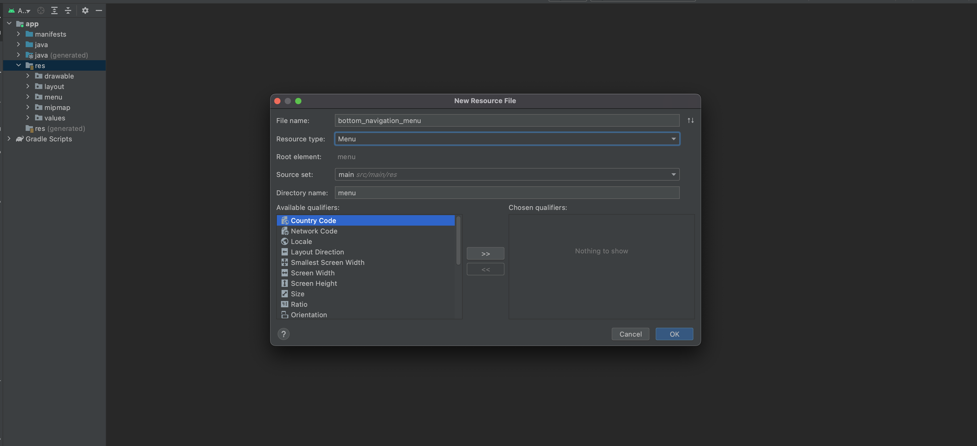 리소스 폴더에 메뉴를 만들어줍니다.
